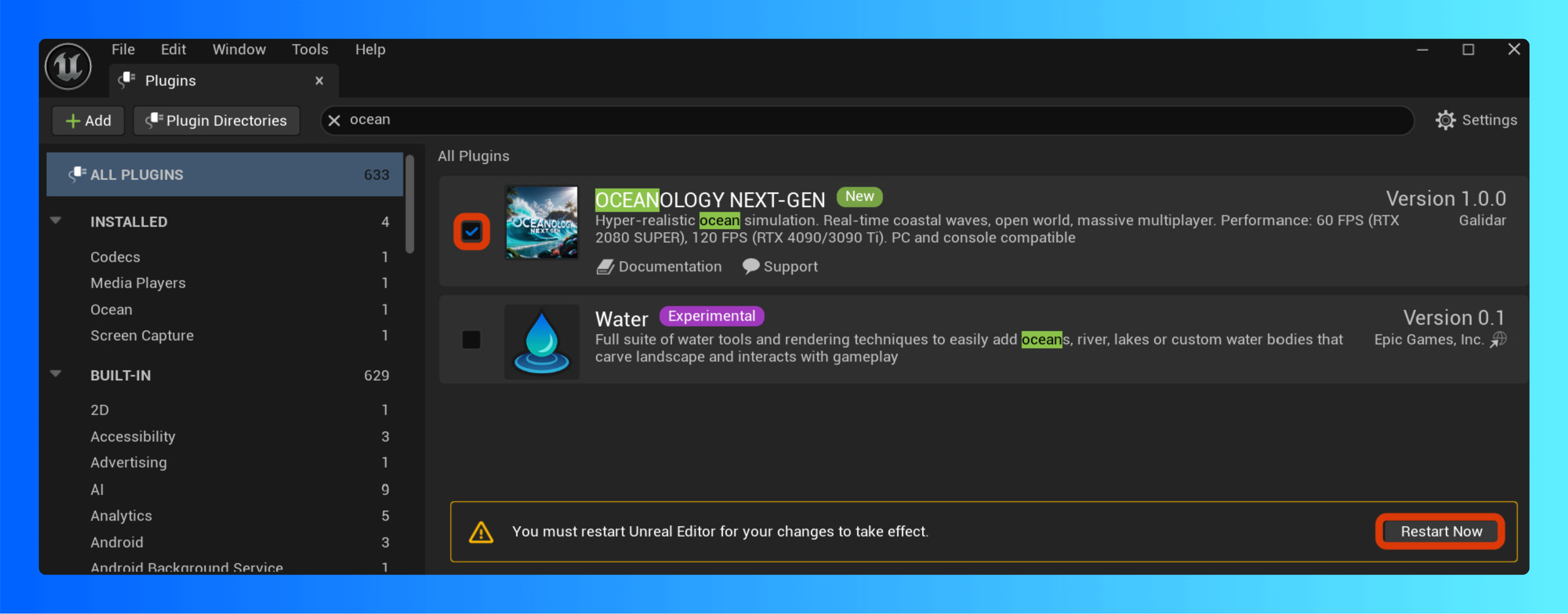 Oceanology NextGen is now enabled, just make sure to update your defaultengine.ini to our recommened settings here: DefaultEngine.ini